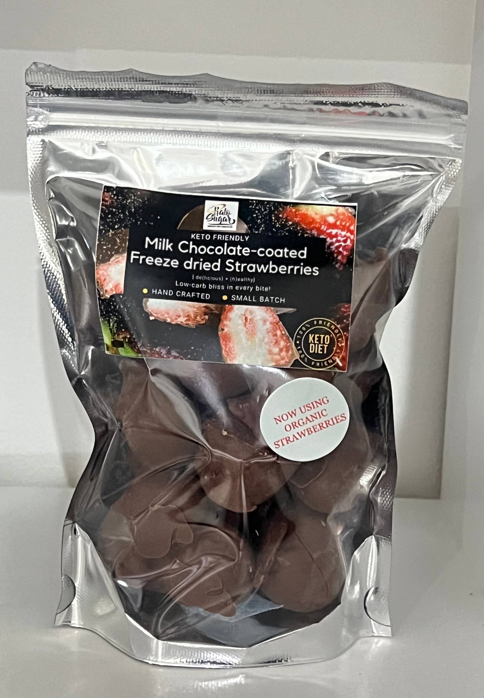 Indulge in the perfect blend of health-conscious luxury with our Handcrafted Keto Milk Chocolate-Coated Freeze-Dried Strawberries, now made with a fresh batch of new organic Aussie strawberries.
