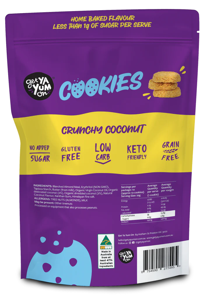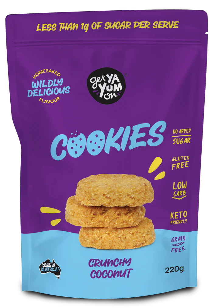 Get Ya Yum On Cookies Crunchy Coconut (NEW Large Sharepack Size!) 220g