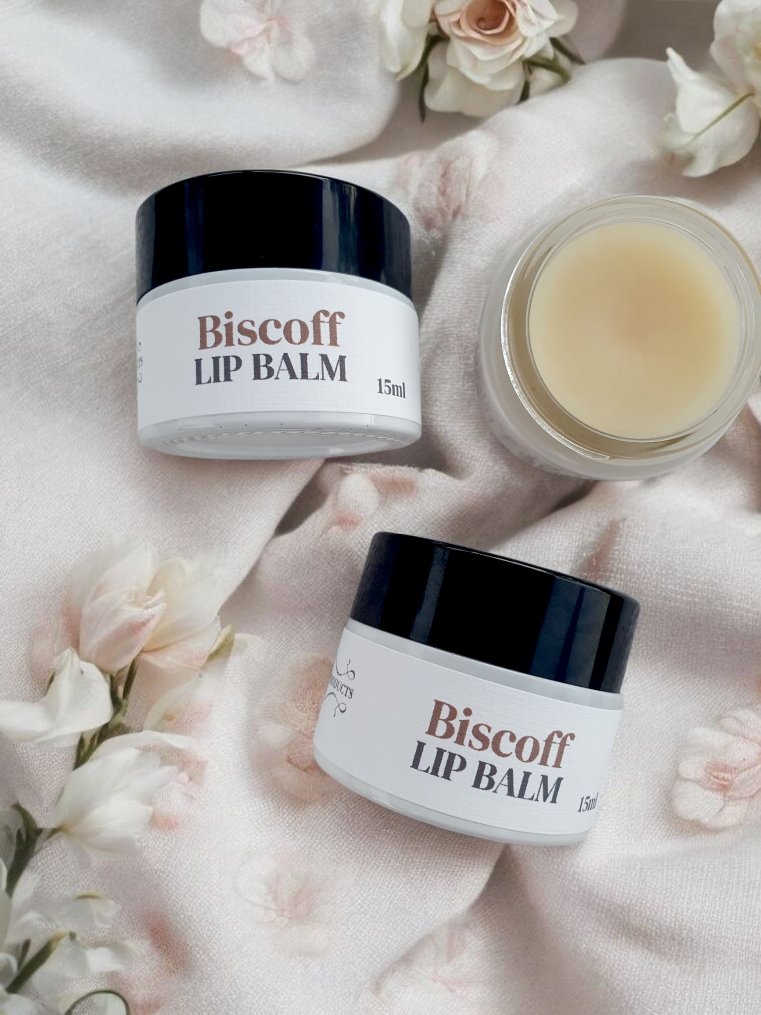 Hand Poured Nourishing Lip Balm: Biscoff 15ml - Almond Oil & Shea Butter