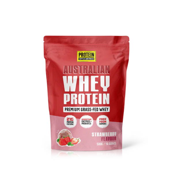 Protein Supplies Australia Australian Whey Protein Premium Grass-fed Whey - Strawberry 500g