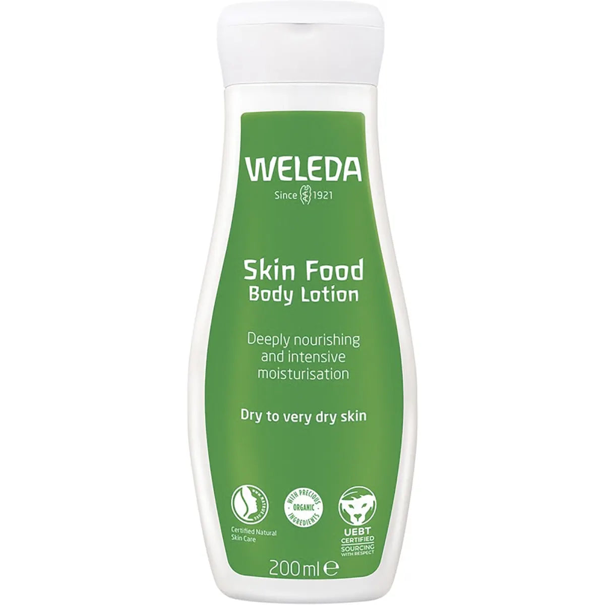 Weleda Skin Food Body Lotion deeply nourishes and hydrates dry skin with a rich blend of sunflower and safflower seed oils, shea butter, and soothing botanical extracts like chamomile and calendula.