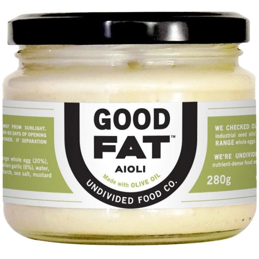 Australia's first aioli made with Australian olive oil and no industrial seed oils. Good Fat Aioli is made with Australian olive oil, Australian garlic and free range whole eggs to provide amazing flavour and texture that's fantastic for a variety of dishes. Added apple cider vinegar, lemon juice and mustard powder adds that perfect tang that's finger-licking good!